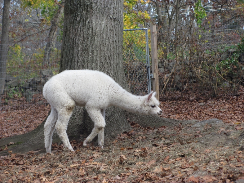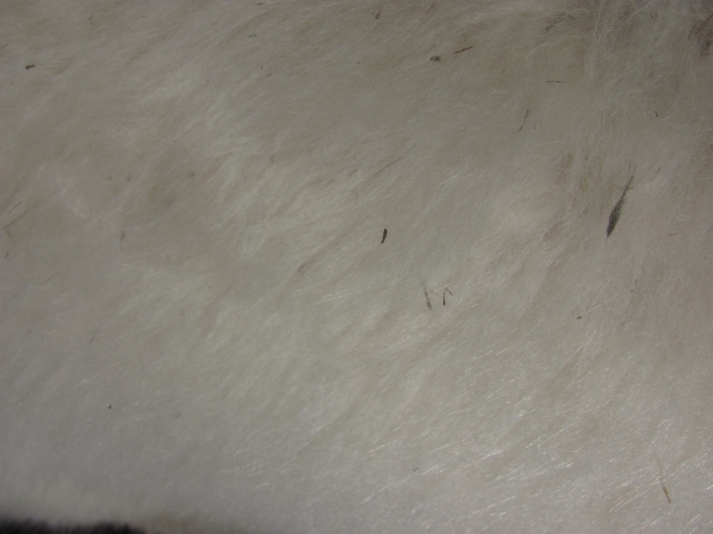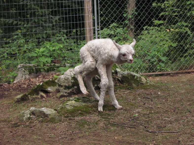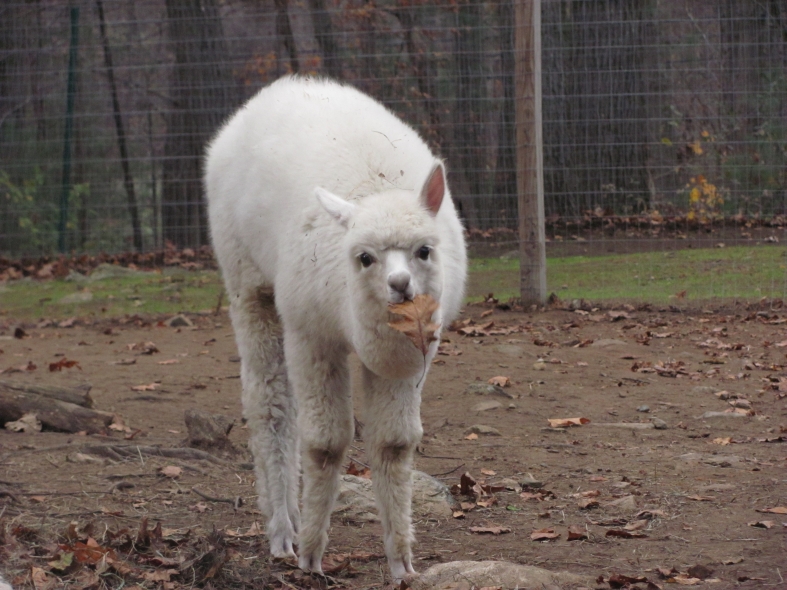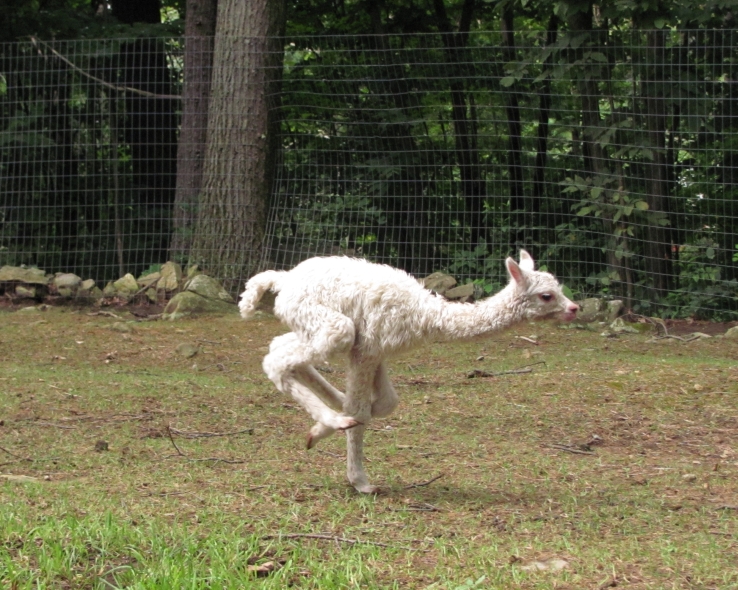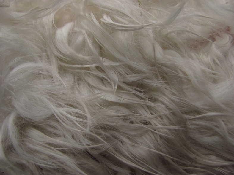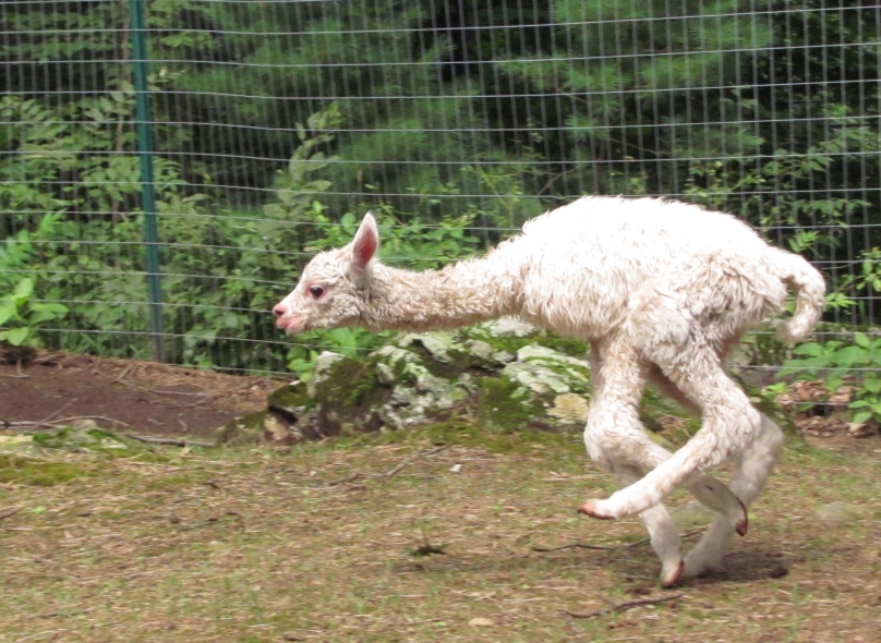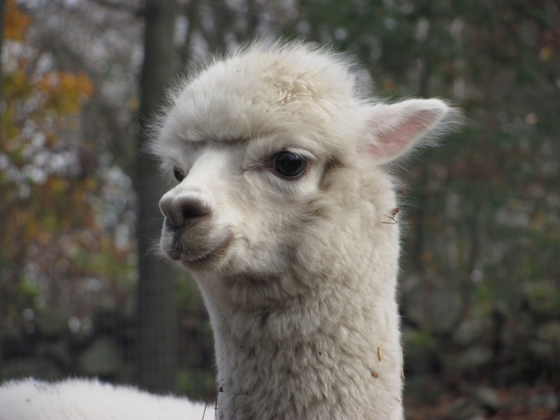 Temperment: agile, intelligent, friendly Color (phenotype), Gender: white adult female Color (genotype, probable): dominant white / either brown or black, likely carries white spot gene Breed: Huacaya ARI#: 32500806 Sire: EMA Manchester Dam: TKA Zoey Offspring born into the Pasture Candy herd: Ancestors with 40 or more registered offspring, as of October 2010 (generations back): Pperuvian Guellermo G4546 (4), Peruvian Camilio G4561 (4), Peruvian Ion S221 ALOA (3), Peruvian Fuego G226 (5), Peruvian Hemingway G171 (5), Pperuvian Felix G4562 (5), Ppperuvian El Moustachio 6003 (4), K-2 (3), Mister Antonio (4) Fiber description: Unusual silky type fiber. Soft pleasant handle, hard to describe - feels like the sorts of materials used to make baby blankets.