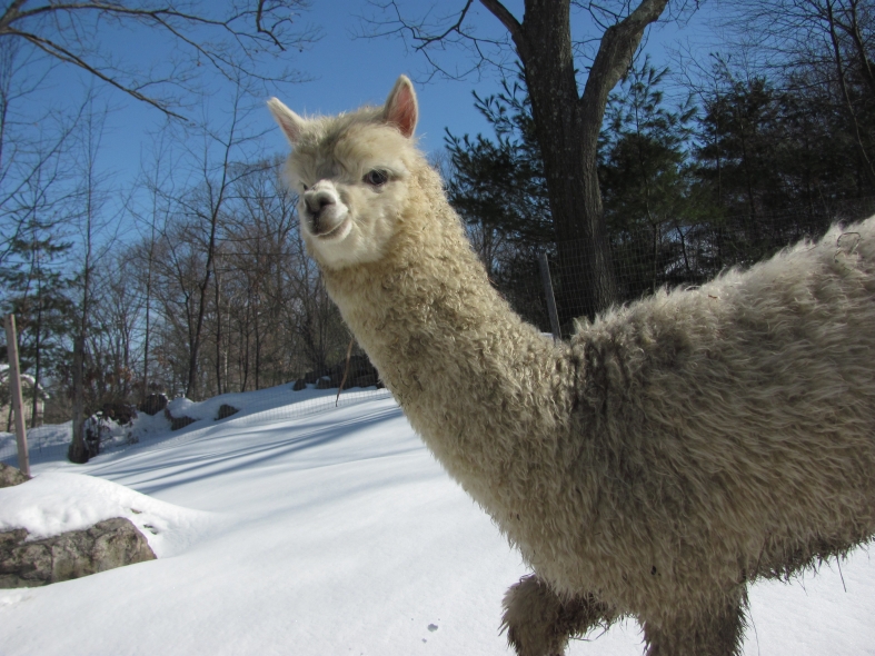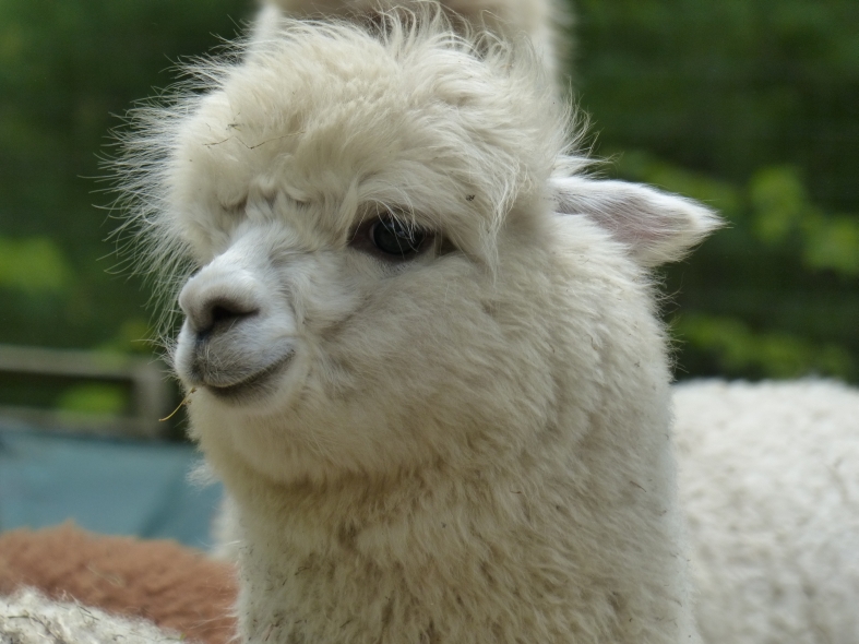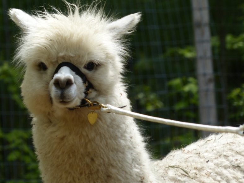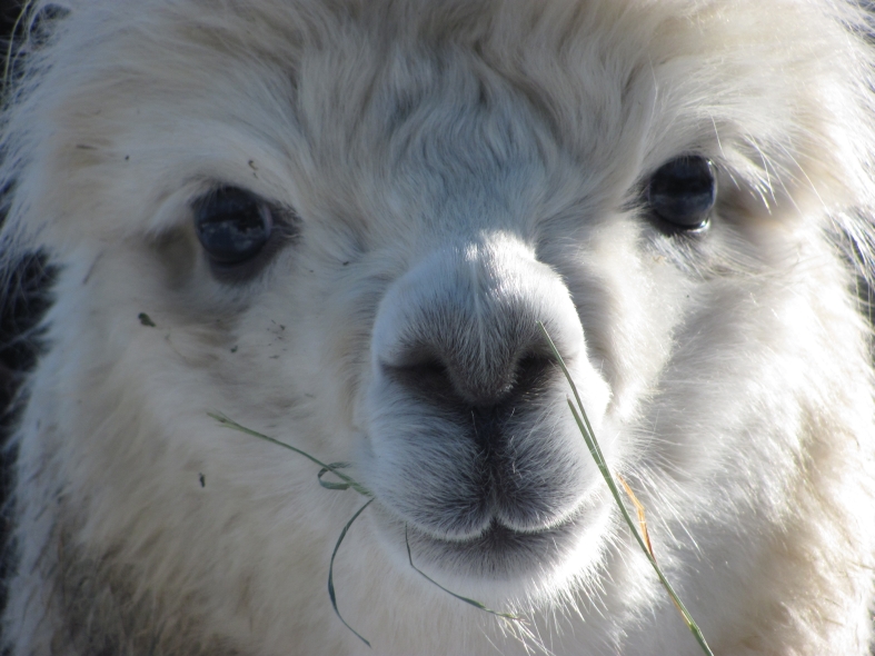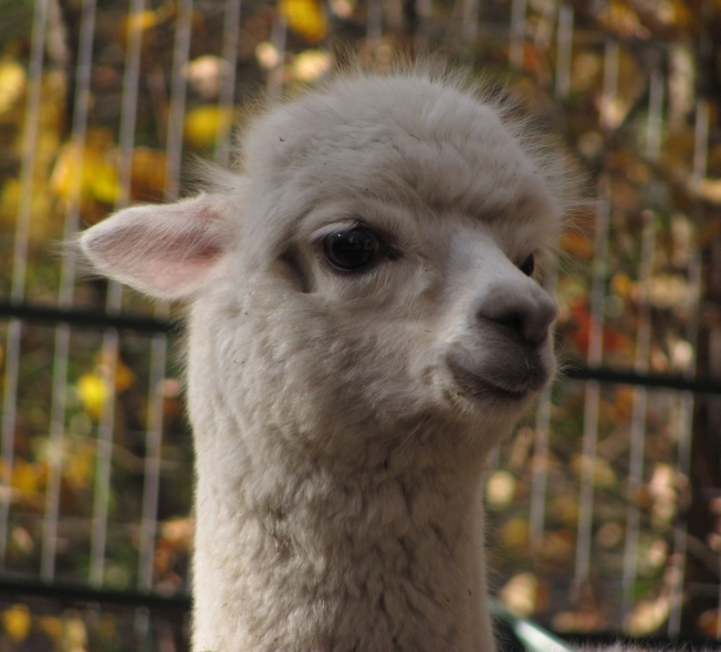 Temperment: agile, intelligent, friendly Color (phenotype), Gender: white adult female Color (genotype, probable): dominant white / either brown or black, likely carries white spot gene Breed: Huacaya ARI#: 32500806 Sire: EMA Manchester Dam: TKA Zoey Offspring born into the Pasture Candy herd: Ancestors with 40 or more registered offspring, as of October 2010 (generations back): Pperuvian Guellermo G4546 (4), Peruvian Camilio G4561 (4), Peruvian Ion S221 ALOA (3), Peruvian Fuego G226 (5), Peruvian Hemingway G171 (5), Pperuvian Felix G4562 (5), Ppperuvian El Moustachio 6003 (4), K-2 (3), Mister Antonio (4) Fiber description: Unusual silky type fiber. Soft pleasant handle, hard to describe - feels like the sorts of materials used to make baby blankets.