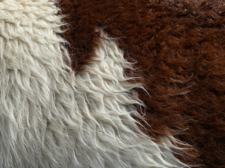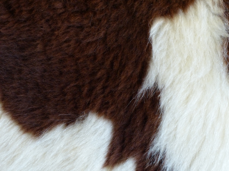 Ancestors with 40 or more registered offspring, as of December 2013 (generations back): Uber's Diamond (4), 5Peruvian Black Ice 9069 (4), 5Peruvian Chinchero 9036 (4), Macho Fawn HST G451 (4), Peruvian Macusani (5) Fiber description: Soft, very pleasant handle.