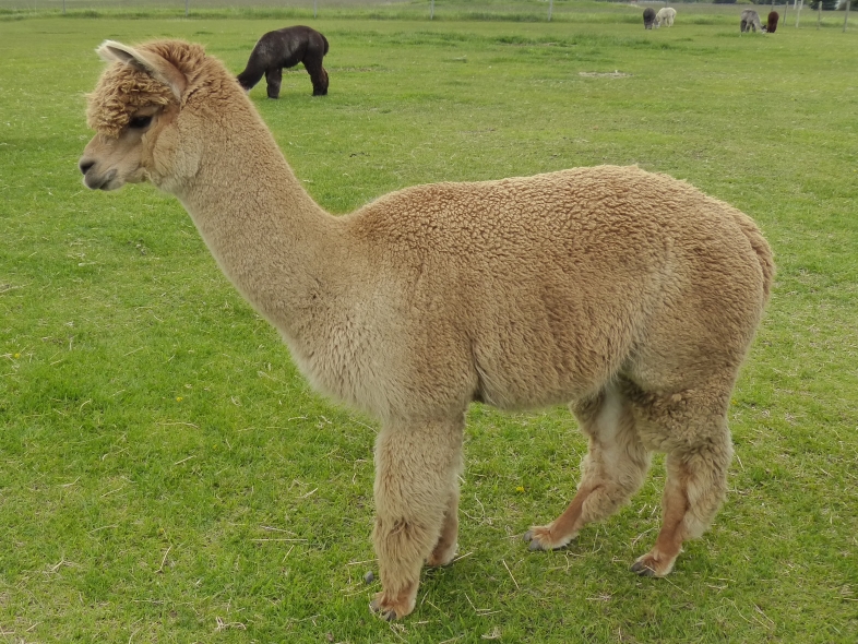Temperment: Amazing presence. Active and mischevious. Color (phenotype), Gender: fawn adult male herdsire Color (genotype): fawn / true black Breed: Huacaya ARI#: 32244465 Sire: EMA Manchester Offspring born into the Pasture Candy herd: Ancestors with 40 or more registered offspring, as of October 2010 (generations back): Brittany's Desperado (3), SA Karrington (5), SA Emperado (4), Peruvian Hemingway G171 (5), Pperuvian Felix G4562 (5), Ppperuvian El Moustachio 6003 (4), K-2 (3), Mister Antonio (4) Fiber description: Soft handle. Dense!